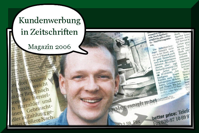 Unsere Kundenwerbung besteht fast ausschließlich aus Mundpropaganda zufriedener Kunden und der regelmäßigen Vorstellung aktueller Recherchen in verschiedenen Zeitschriften & Journalen.